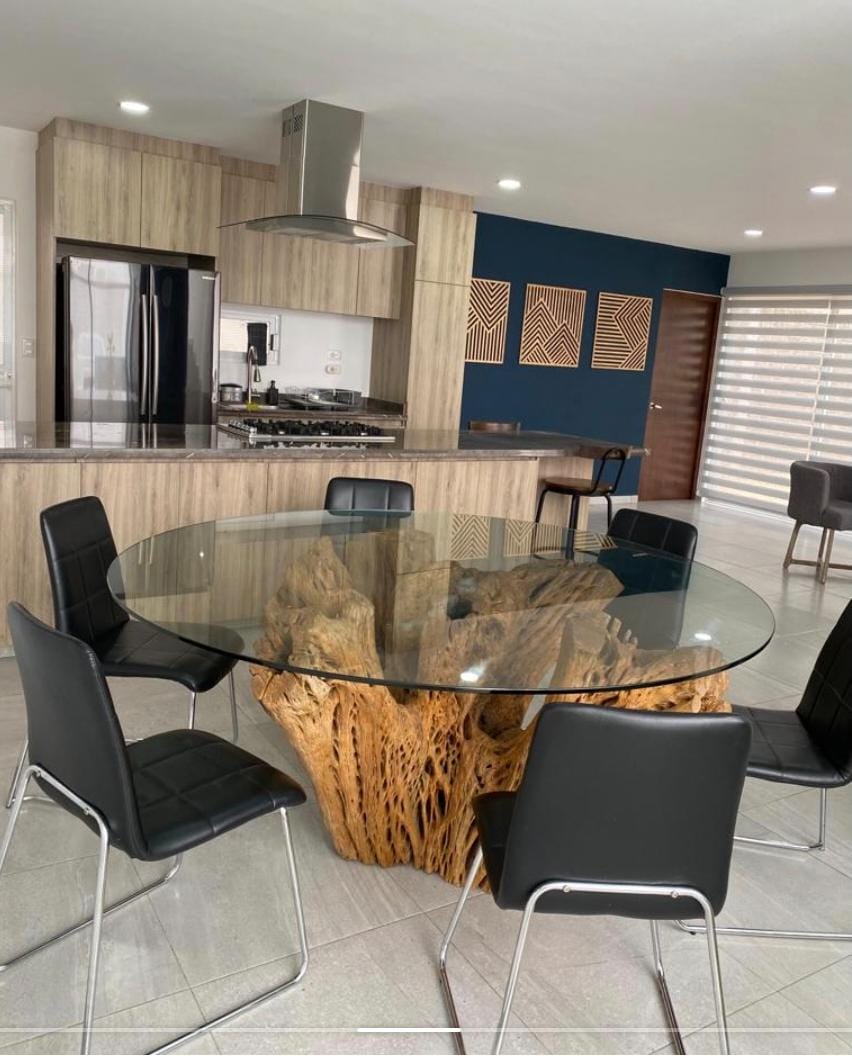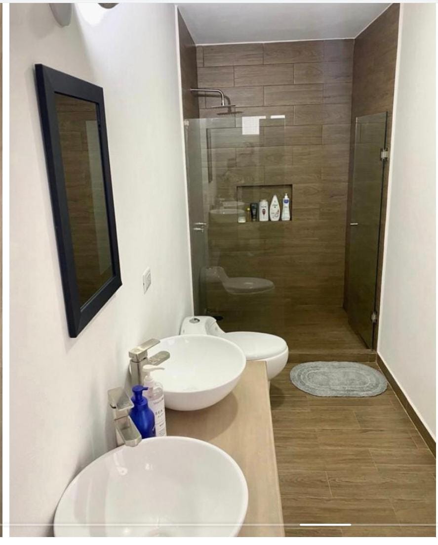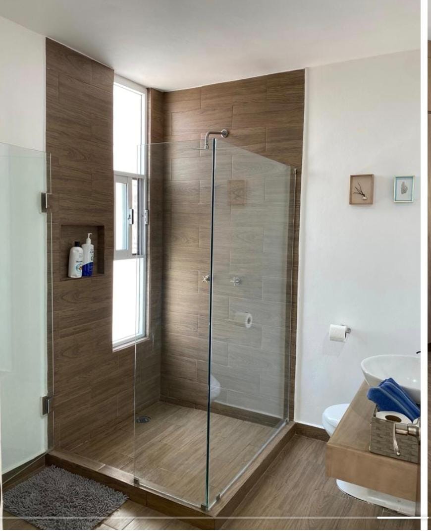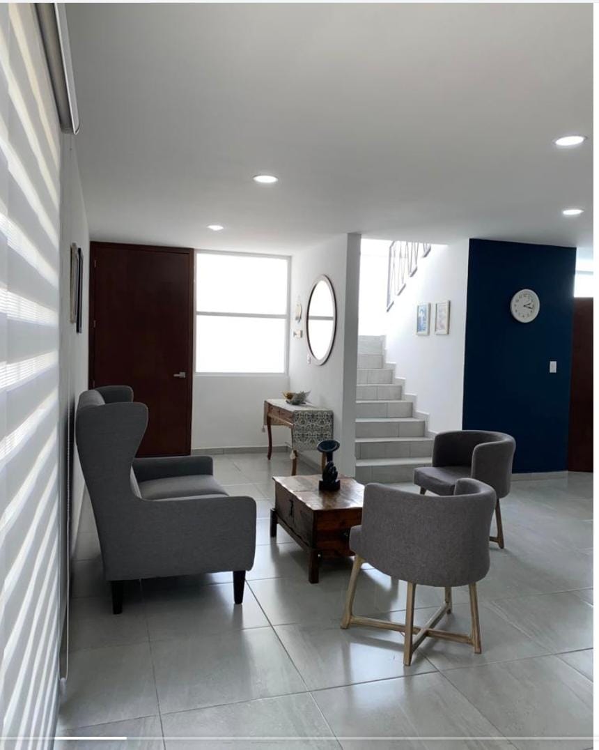 Planta baja: sala comedor, cocina equipada, recamara o estudio completo con baño, medio baño y bodega, cuarto de lavado cubierto, cisterna 8mil lts, cochera 2 autos, acceso lateral al jardín común.