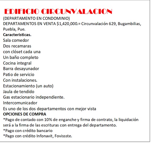Características: Sala comedor, dos recamaras con closet c/u, un baño completo, Cocina integral, Barra desayunador, Patio de servicio con instalaciones, estacionamiento un auto, Jaula de tendido, gas estacionario independiente, intercomunicador, hay dos departamentos a escoger, uno de ellos tiene estacionamiento para dos autos y mejor vista.
