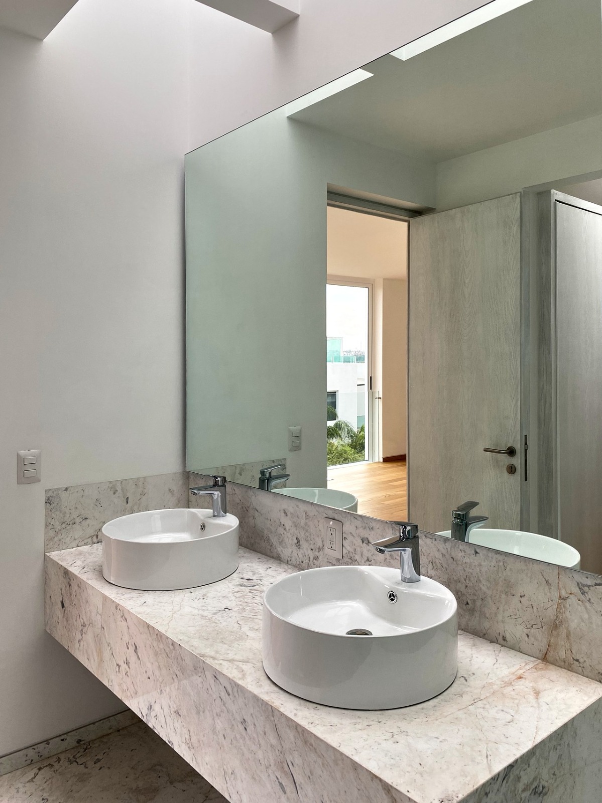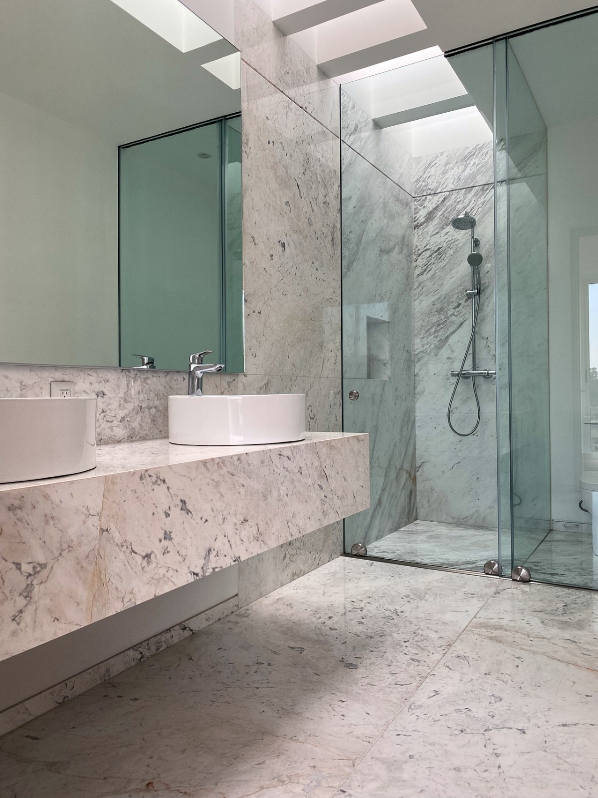 * Baños con mármol blanco en pisos y muros de zona húmeda