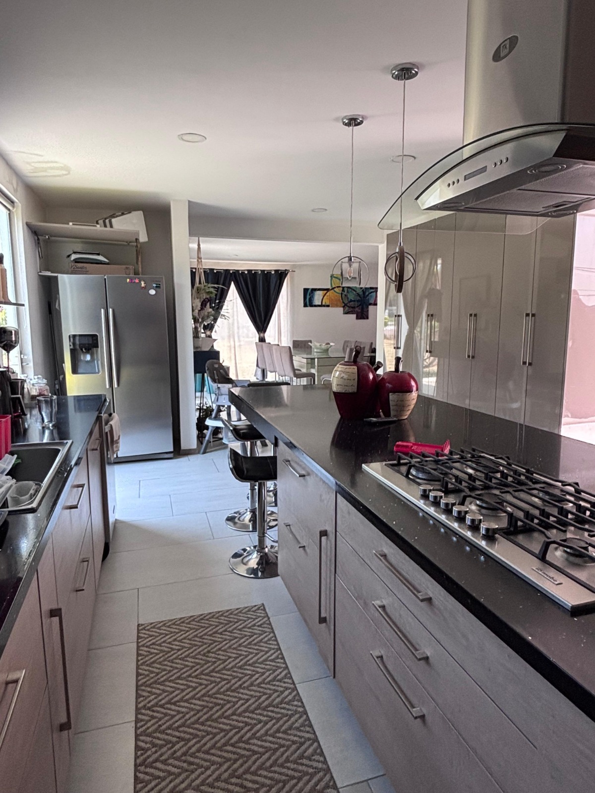 Cocina con cubierta de cuarzo y horno